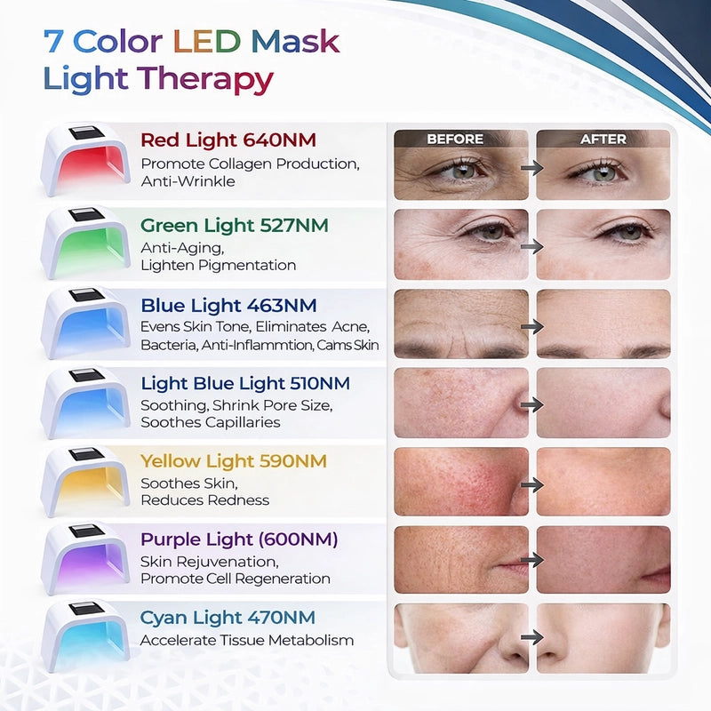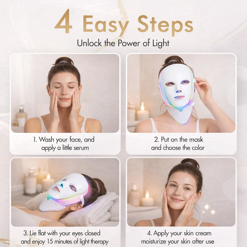 Say goodbye to dull skin and hello to an effortless, radiant glow! This 7-color LED mask brings the spa to you, delivering professional-grade results that save your wallet and boost your confidence.